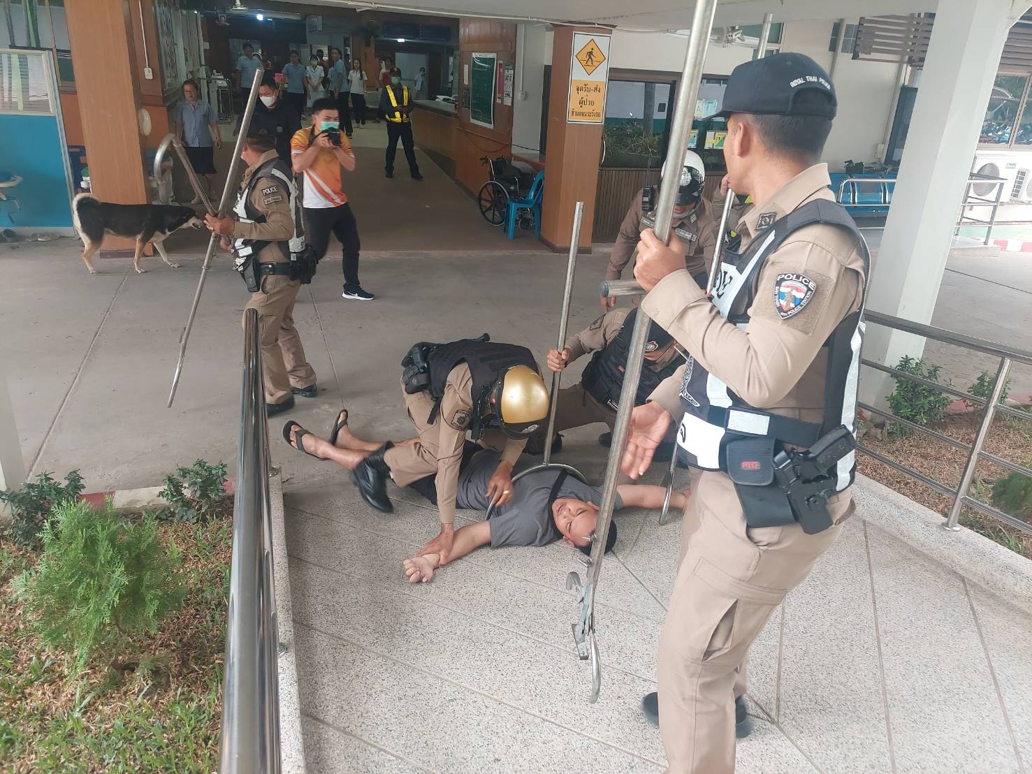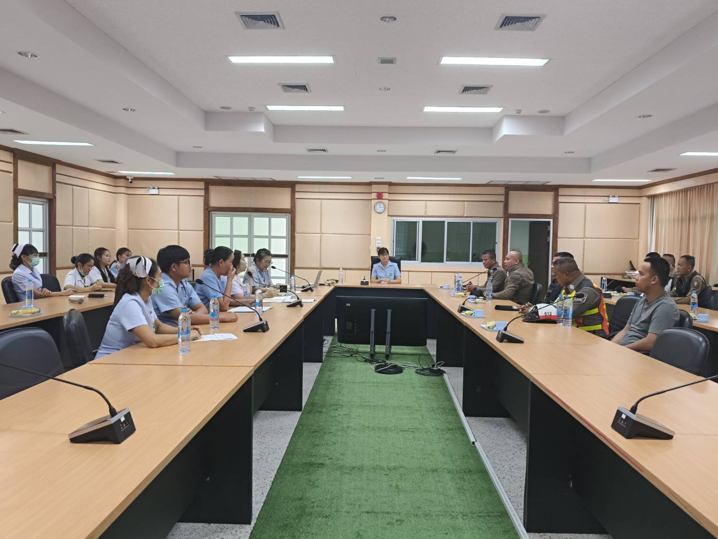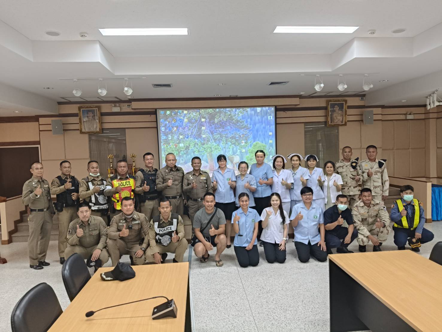 พ.ต.อ.วีระพล ระเบียบโพธิ์ ผกก.สภ.บ้านแท่น, พ.ต.ท.อภิรักษ์ ดวงใจ รอง ผกก.ป.สภ.บ้านแท่น และเจ้าหน้าที่ตำรวจในสังกัด สภ.บ้านแท่น พร้อมด้วย พญ.นภัสวรรณ ชนะพาล ผอ.รพ.บ้านแท่น เจ้าหน้าที่โรงพยาบาลบ้านแท่น เจ้าหน้าที่ อส.ฯ ร่วมประชุมและฝึกซ้อมแผนเผชิญเหตุฯ (โดยกำหนดสถานการณ์ผู้ป่วยจิตเวช อาละวาด) บริเวณ โรงพยาบาลบ้านแท่น