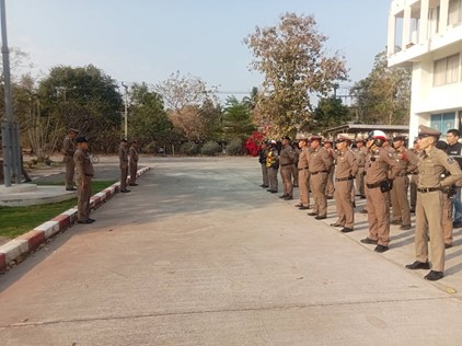 พ.ต.อ.เอกพงษ์ พลมณี ผกก.สภ.บ้านแท่น ประชุมชี้แจงข้าราชการข้าราชการตำรวจกำชับการแต่งเครื่องแต่งกาย ทรงผม ต้องเรียบร้อย พร้อเมอบรมความประพฤติและระเบียบวินัยตามคำสั่ง ตร.ที่ ๑๒๑๒/๒๕๓๗ เมื่อวันที่ ๑๕ ตุลาคม ๒๕๖๗