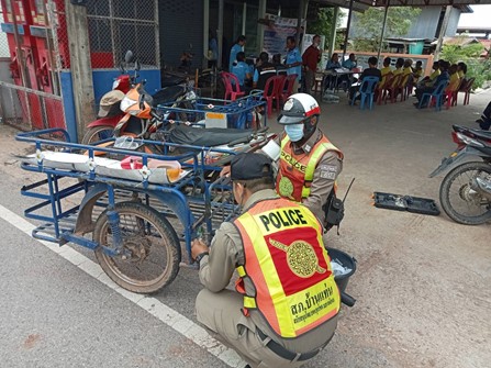 ร.ต.อ.สิทธิชัย เอนสันเทียะ รอง สว.(จร.) สภ.บ้านแท่น พร้อมด้วย จ.ส.ต.สิทธิพงษ์ พิมพ์จันทร์ ผบ.หมู่