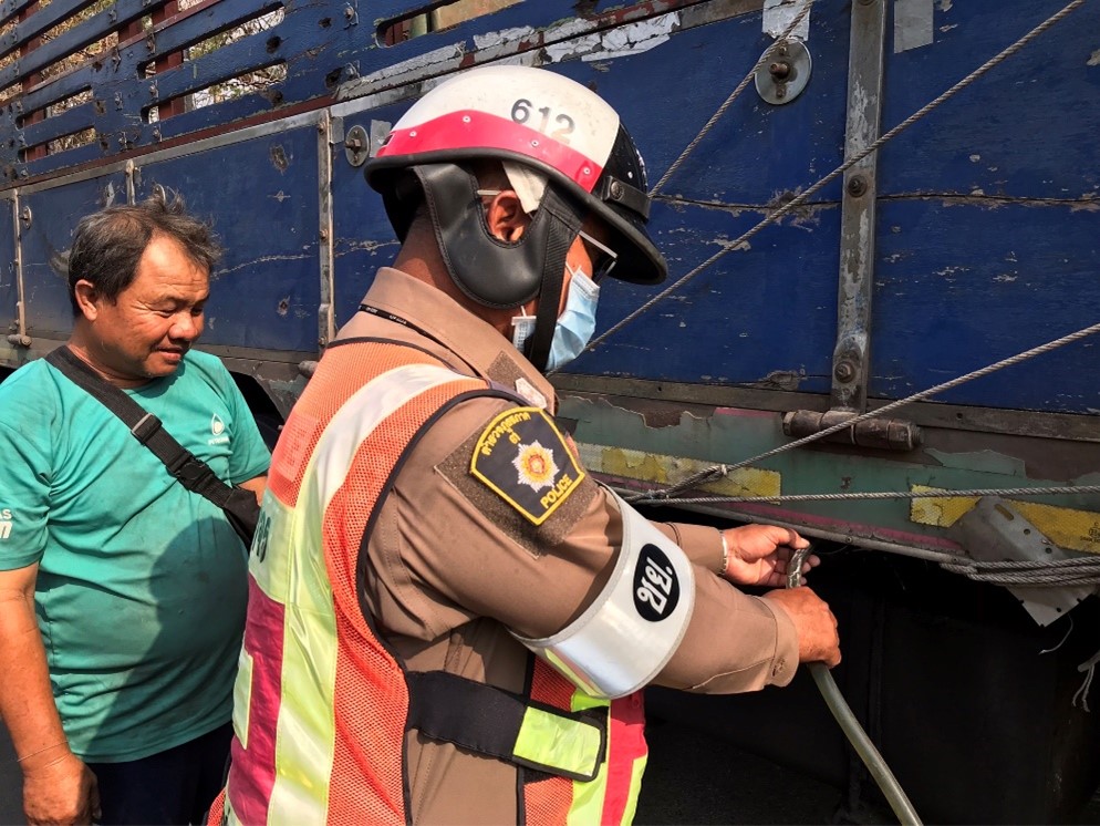 ร.ต.อ.สิทธิชัย เอนสันเทียะ รอง สว.(จร.) สภ.บ้านแท่น ให้การช่วยเหลือผู้ขับขี่รถยนต์น้ำมันหมด โดยก
